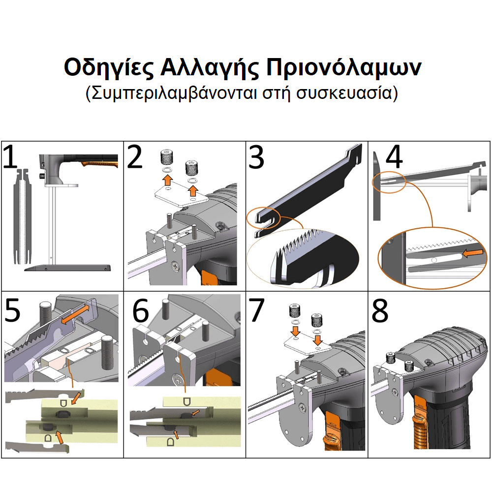 Η διπλή, αντίστροφη κίνηση των πριονόλαμων, εξασφαλίζει ακριβή κοπή, χωρίς θόρυβο και κραδασμούς. Το σύστημα αλλαγής πριονόλαμων χωρίς εργαλεία, βοηθά τη γρήγορη και εύκολη αλλαγή, σε λίγα μόνο δευτερόλεπτα.